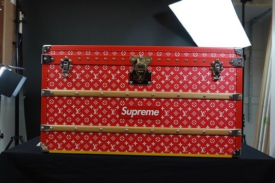 One of the more coveted pieces is no doubt the signature Louis Vuitton x Supreme Malle Courrier Trunk Monogram 90 in red, adorned with both LV and Supreme branding. Their purses might be more common, but Louis Vuitton got their start selling trunks, so it only makes sense that skateboard-centric brand Supreme chose one as the centerpiece of the brands’ first collaboration. Louis Vuitton x Supreme have created enough column inches to go down as one of, if not the, most-talked-about collabs in history. One factor that made the collaboration so controversial was its astronomical pricing. With all items being produced and distributed by Louis Vuitton rather than Supreme, the collection was always going to sit in the luxury brand’s price structure. Once you factor in the collaboration aspect and the limited production, prices once again increased on top of LV’s regular pricing. The Louis Vuitton x Supreme Malle Courrier 90 Trunk blends the signatures of both, with LV’s iconic monogram leather done in Supreme’s vibrant red and the latter’s logo front and center. It’s finished with silver-colored metal details and white interior lining, and is available to Buy or Sell today on StockX. The made-to-order trunks are by far the most exclusive and expensive items from the Louis Vuitton x Supreme collection. Louis Vuitton was only 16 years old when he moved to Paris to become an apprentice trunk maker. His Malle trunk was the first to feature a flat top and bottom, making it stackable and more easily transportable. These trunks would become the foundation of his self-titled company, and they’ve been a Louis Vuitton mainstay since 1858. The Louis Vuitton x Supreme trunks are bespoke, made-to-order items, and that’s reflected in their price tags.